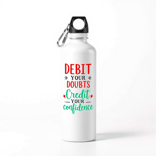 Motivational QuoteStay motivated with every sip using the “Debit Your Doubts, Credit Your Confidence” sipper bottle. Designed for CA students and finance professiona...