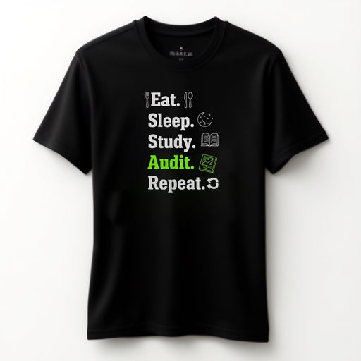 "Eat. Sleep. Study. Audit. Repeat.." T-Shirt