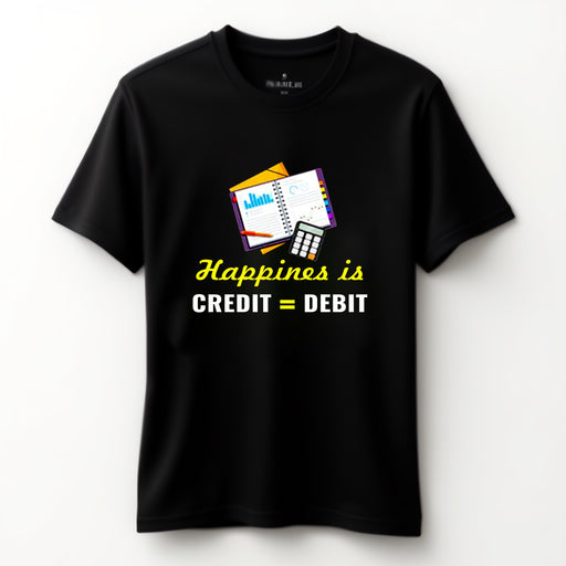 Motivational QuoteFor accountants and CA aspirants, true happiness is simple – when Credit = Debit! This quirky and relatable t-shirt is a must-have for commerce stu...